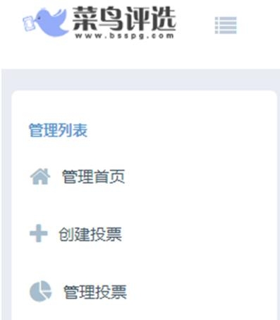 第一个步骤:一定要认准这个正轨菜鸟评选网站,现在有很多的都是套一些假冒信息的,会导致我们受骗,这对用户非常的不利。只要您认准这个菜鸟评选,认准这个小鸟标志,就会发现我们能够进入正规投票模式,可以避免被骗。打开这个菜鸟投票电子投票网站之后,我们点击这个左侧,就会发现在这里有这个管理首页、还有创建投票等这些操作。用户只需要根据这个左侧栏的内容,进一步进行管理就好了。这个第三个管理投票内容,对我们来说也非常的简单,用户只要点击进去,就能够实时的看到一些投票信息。