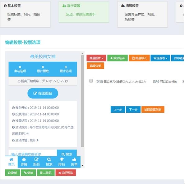 创建成功之后的图片信息,大致是这样的情况。对于投票选手,这些我们都能够进行自由的编辑。有的用户在完成这一步骤之后,不知道怎么操作。对于这个过程,表示很纠结的。其实,我们在进行操作的过程,用户如果发现有填写错误的地方。您也不用担心,我们只是需要进行从新编辑就可以了。