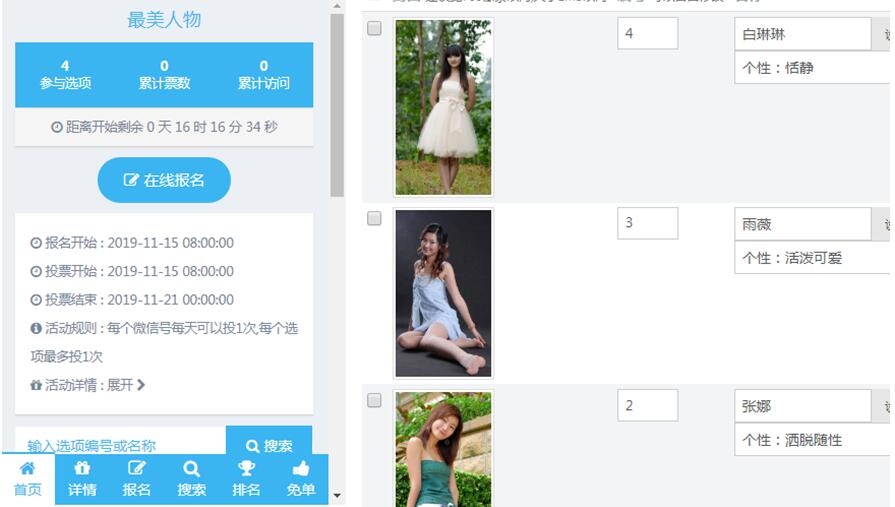 菜鸟评选是任务规则我们看到是非常的简单,只需要用户点击评选投票添加选手,点击了这个添加选手模式。就会看到这个下面有一个小小的长方形,这里是让添加照片的,我们只是需要点击,单击进去之后就会看到有提示,找到自己所需要填写的照片进去就可以了。整体的模式非常的简单,而且在这个左侧,我们看到是可以填写选手的名字。如果你觉得这个填写名字有点泄露个人隐私,我们是可以娜娜、或者是网名等形式代替。