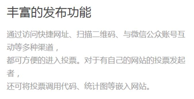 专业的投票系统第三方则是菜鸟投票,不管它的发布投票渠道 ,各个方面我们都能够看到他的技术是非常的精湛,感觉每个环节对我们都是无可挑剔,在使用过程,能够享受到高科技带给我们的无数乐趣。而且也正是因为这个智能操作系统,看到给我们带来了许多完美的享受。这里,让我们来看看这个详细的功能都有哪些?