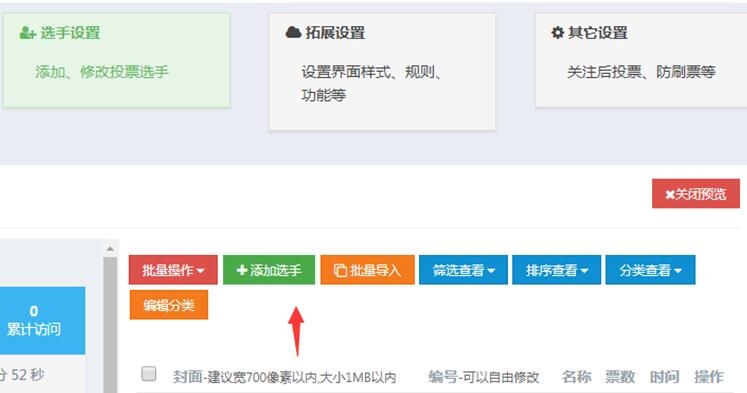 制作微信网络投票操作非常的简单,点击左侧的管理投票,然后进入选手设置模式。点击进入之后,我们就可以看到在这里,用户可以修改添加一些投票选手的信息,这个操作还是很容易快速找到。找到之后,再下方点击绿色的字体,添加选手,这时候就会看到有一些要求,然后我们把这个要求如是完成就可以了。