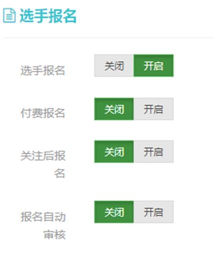 也或者是根据自己的投票模式进行设置,比如我们是可以在这个页面设置付费报名,这个菜鸟评选有提现系统,这样可以与报名选手进行一些交易,这对企业方是有好处的。对于这个报名审核这块,我们可以人工审核,也可以关闭这个选项,这个功能是自主设定的。