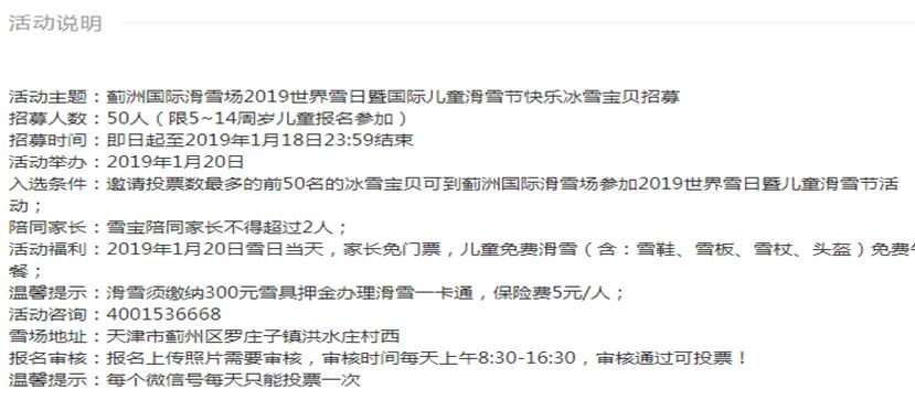 投票系统怎么做?在下方我们则是可以写这个活动规则,以及一些必要的条件。比如文本当中我们看到这个滑雪地址、报名审核条件都可以在这个规则列表当中有填写到。另外对于这个投票规则,在这个环节,也应该有所提示。