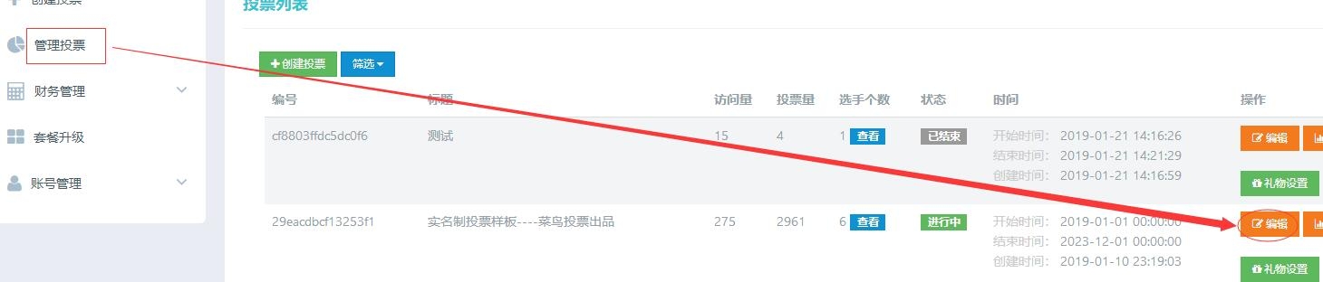 打开后台点击管理投票然后点击选手设置。这时候我们看到选手列表